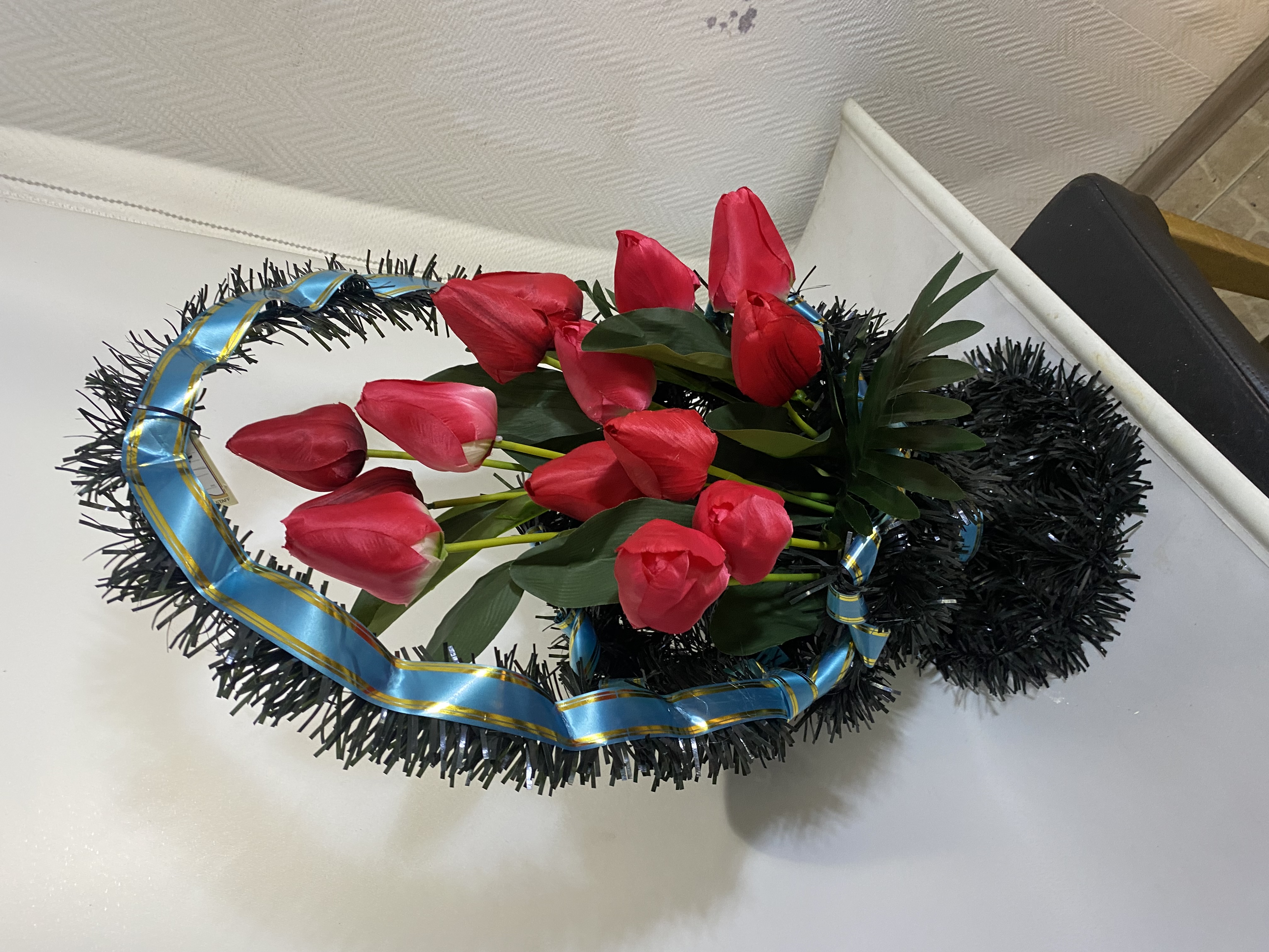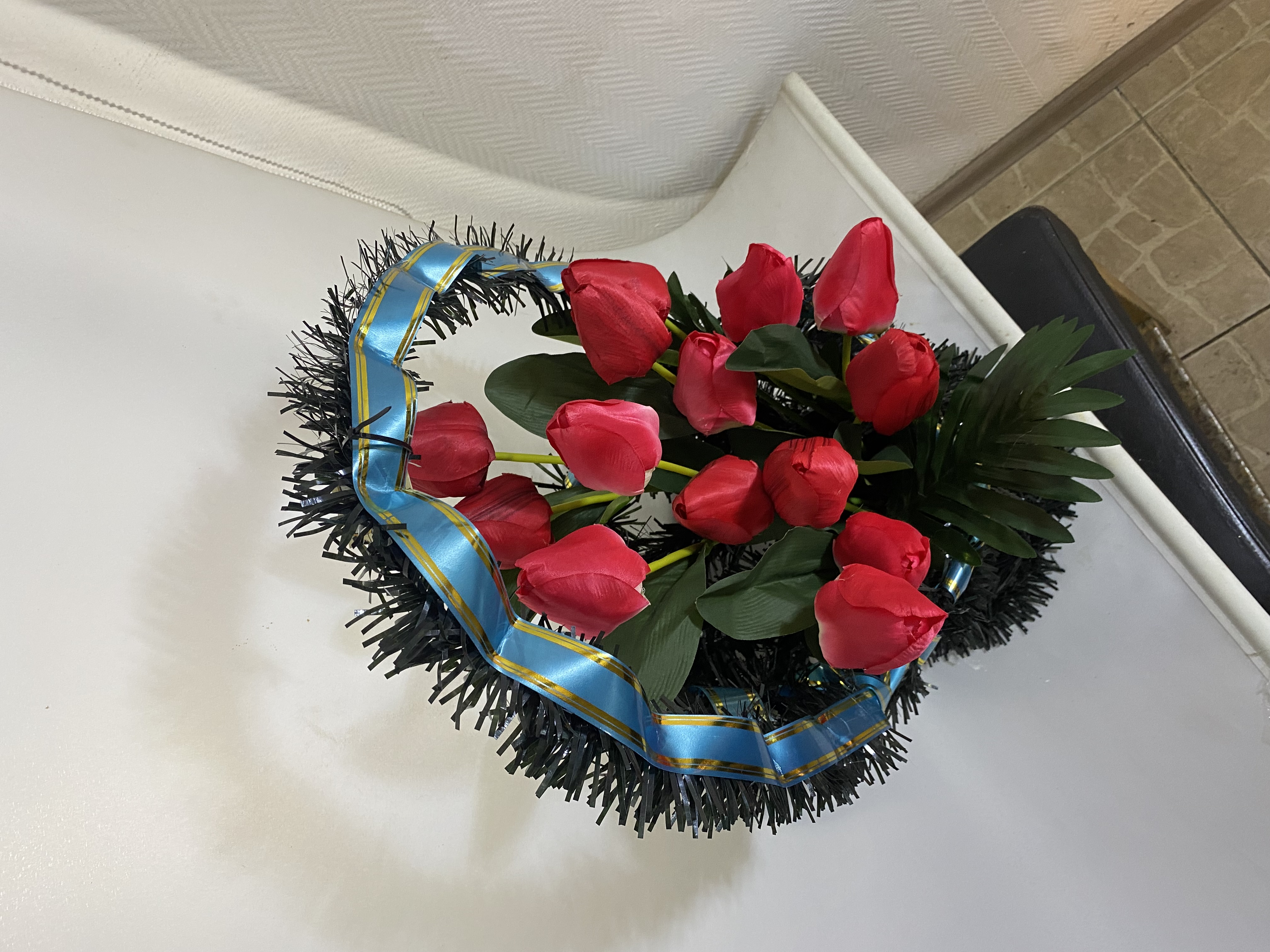 Корзина красные тюльпаны 50 см