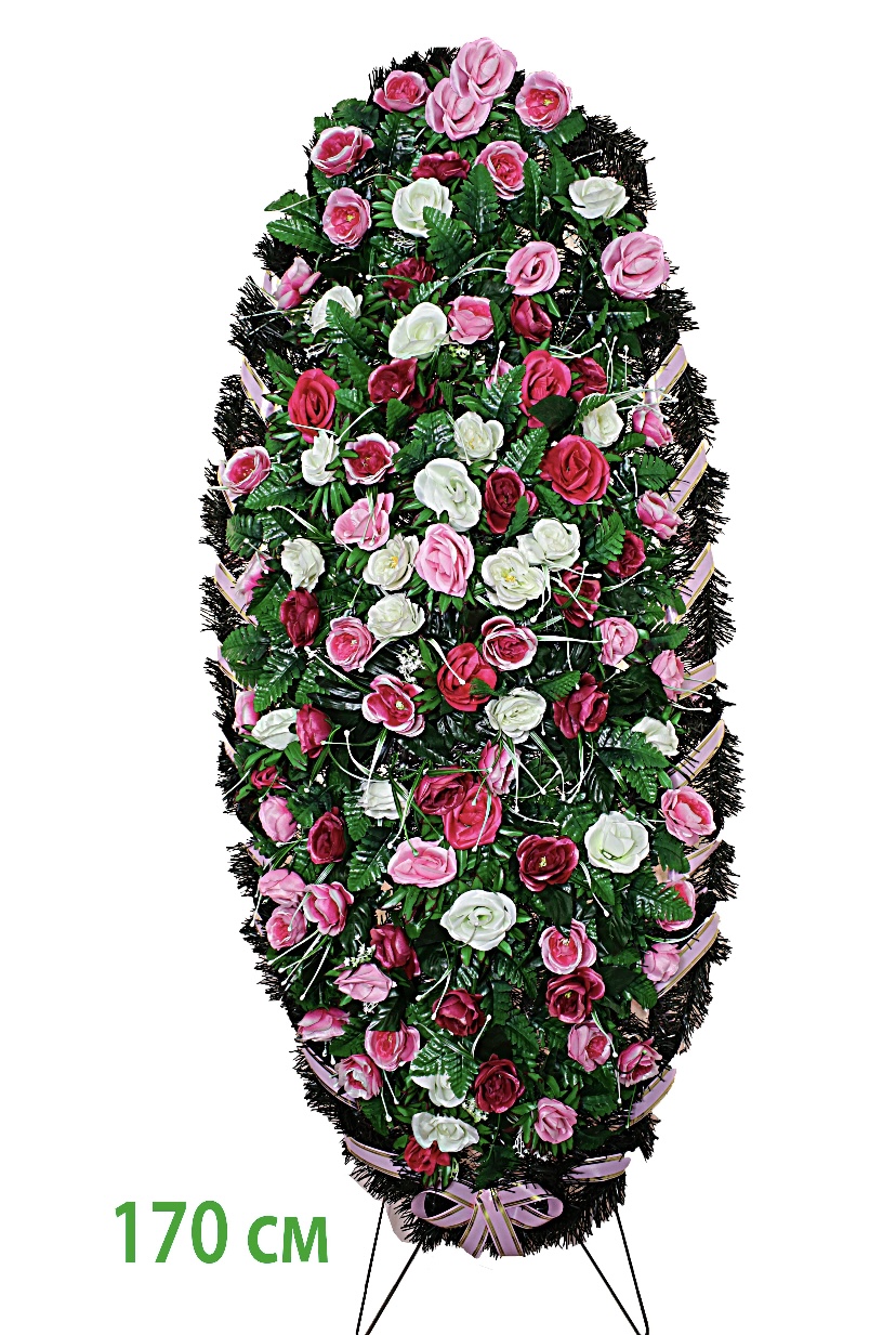 Венок ритуальный 170 см разноцветные розы